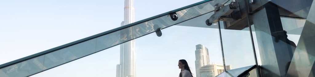 Reserve bilhetes para o Sky Views Edge Walk, a atração mais emocionante do Dubai. Suba 53 andares e caminhe 219,5 metros acima do solo.